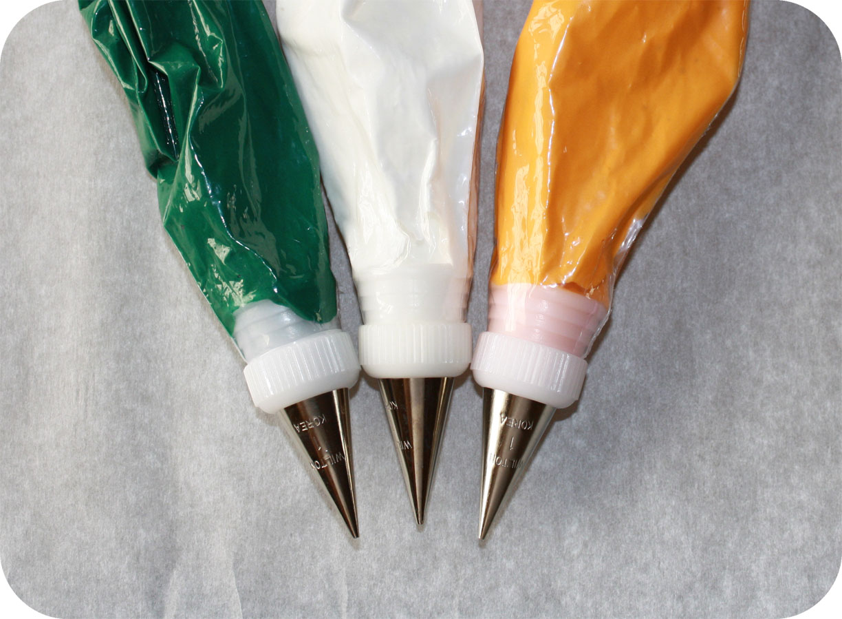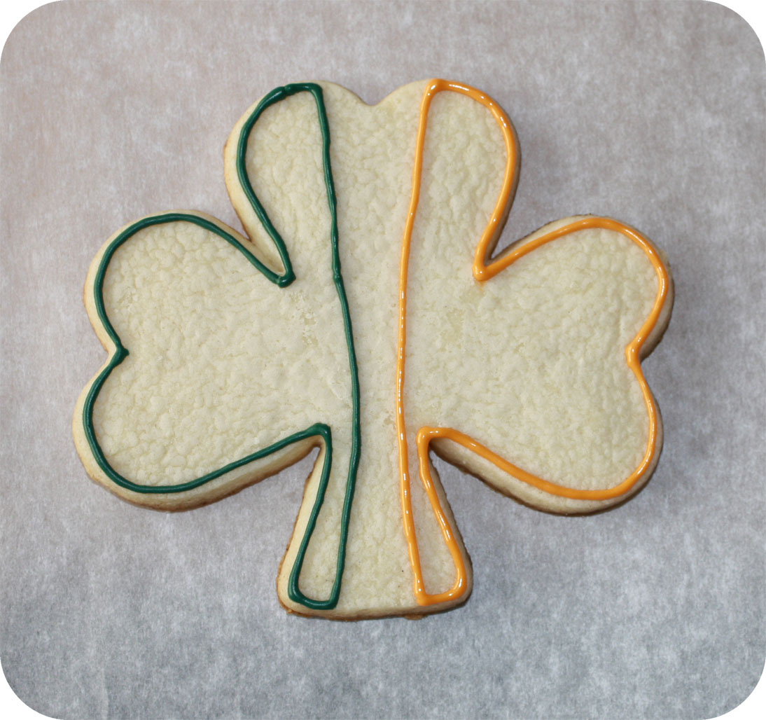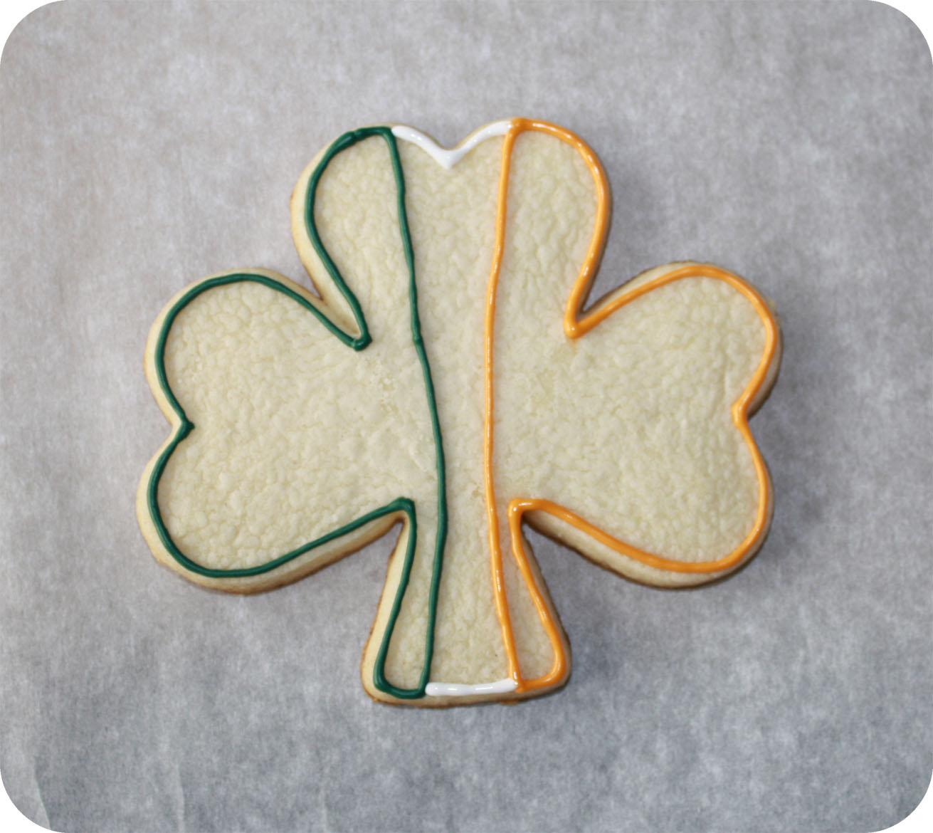 6- Next you are going to flood the cookie. I started with green then orange and then the last color which was white.